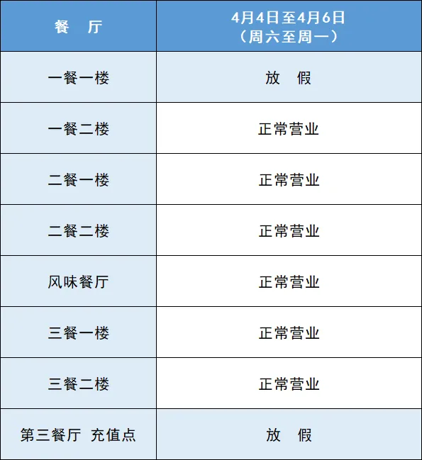 根据学校《关于2026年元旦、清明节、劳动节、端午节、中秋节和国庆节放假安排的通知》,结合实际情况,各餐厅